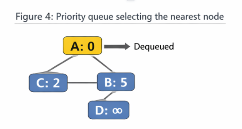 - The system needs to extract the node which has the smallest distance value.